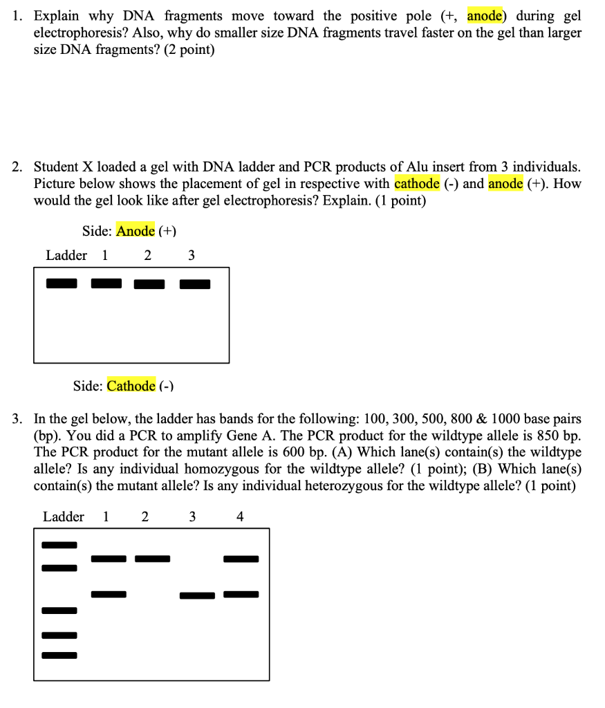 Solved 1 Explain Why Dna Fragments Move Toward The Positive Chegg Com